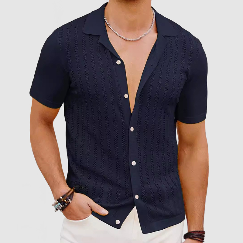 Men's Casual Knit Skeleton Short Sleeve Shirt