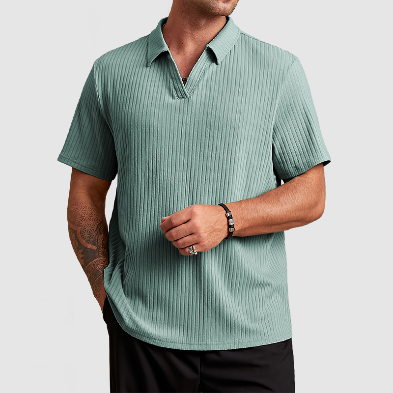 Men's Cotton Knit Striped Textured Short Sleeve Polo Shirt